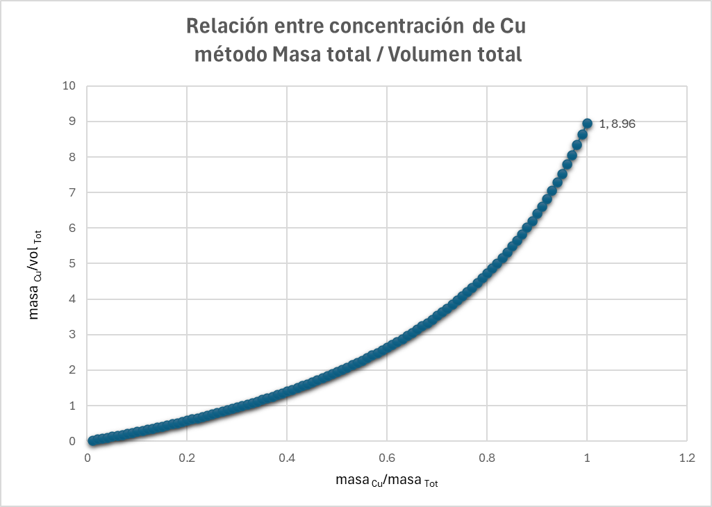 (X) = (masa)Cu/ (volumen)Tot = (masa)Cu/ (masa/ρ)Tot ,